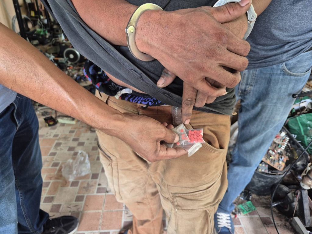 🔺สถานที่จับกุมและตรวจยึด หน้าบ้าน ม.2 ต.ดอนเจดีย์ อ.พนมทวน จ.กาญจนบุรี