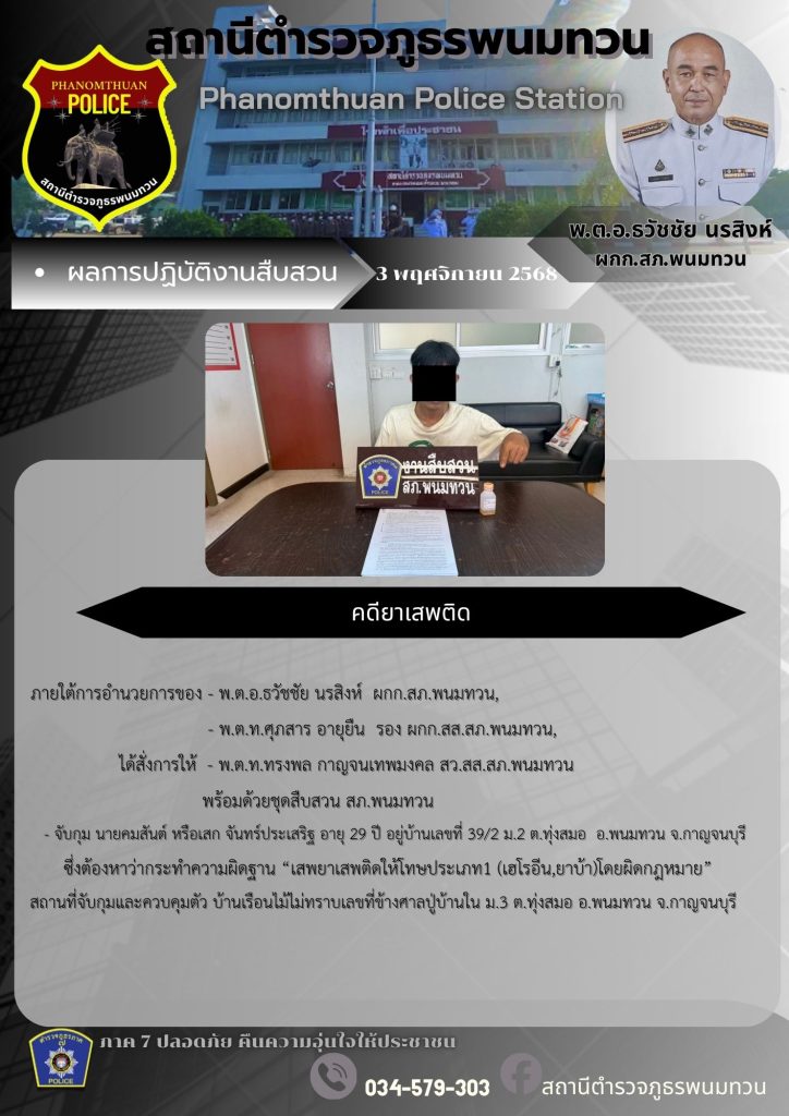 🔺สภ.พนมทวน ภ.จว.กาญจนบุรี ขอรายงานผลการปฏิบัติจับกุมยาเสพติด🔺