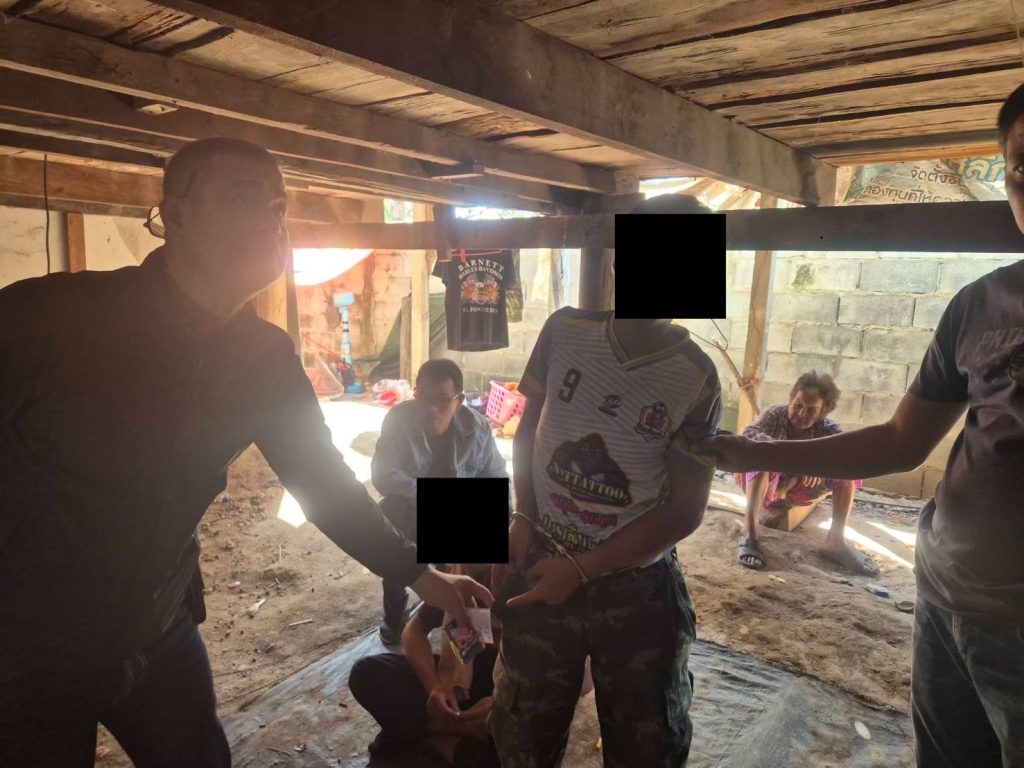 🔺สถานที่จับกุม ใต้ถุนบ้านเลขที่ 7 ม.9 ต.พนมทวน อ.พนมทวน จ.กาญจนบุรี