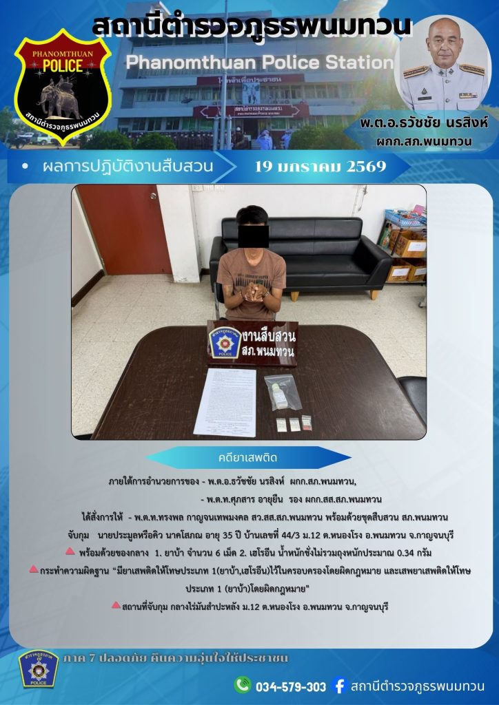 🔺สภ.พนมทวน ภ.จว.กาญจนบุรี ผลการปฏิบัติจับกุมผู้ต้องหาคดียาเสพติด🔺