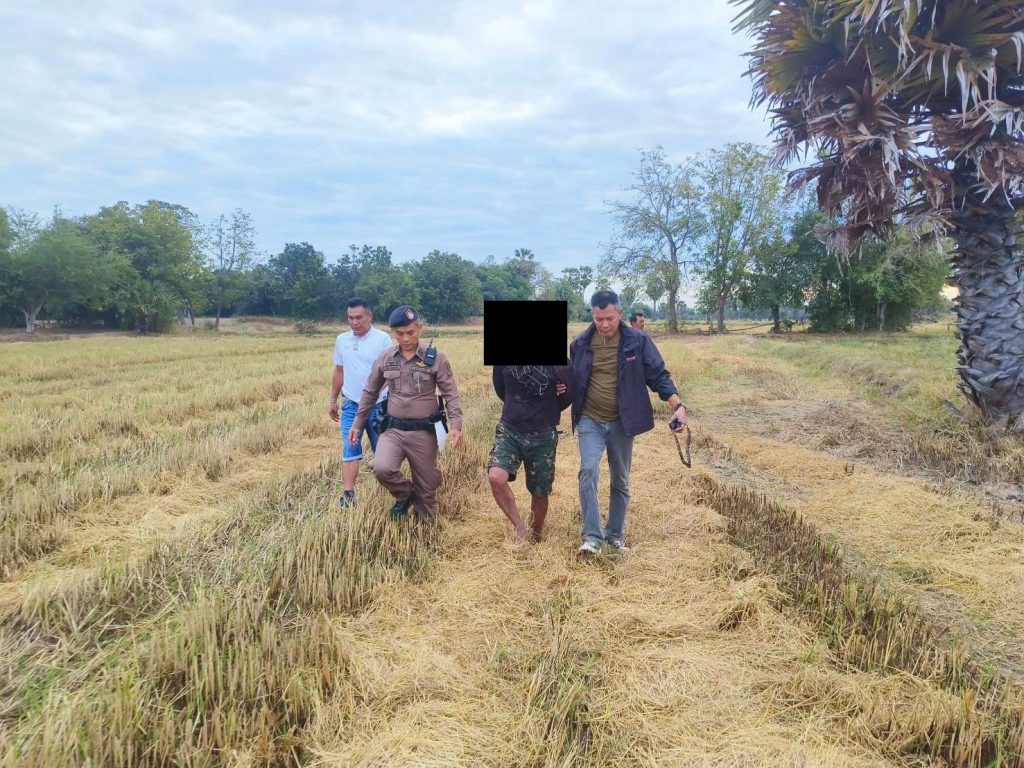 🔺สถานที่จับกุม หน้าเพิงพักชั่วคราวกลางทุ่งนาบ้านห้วยสะพาน ม.9 ต.หนองโรง อ.พนมทวน จ.กาญจนบุรี