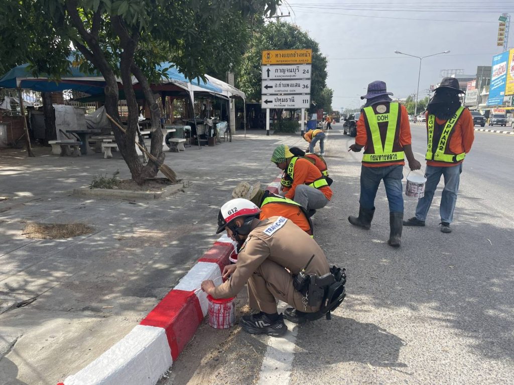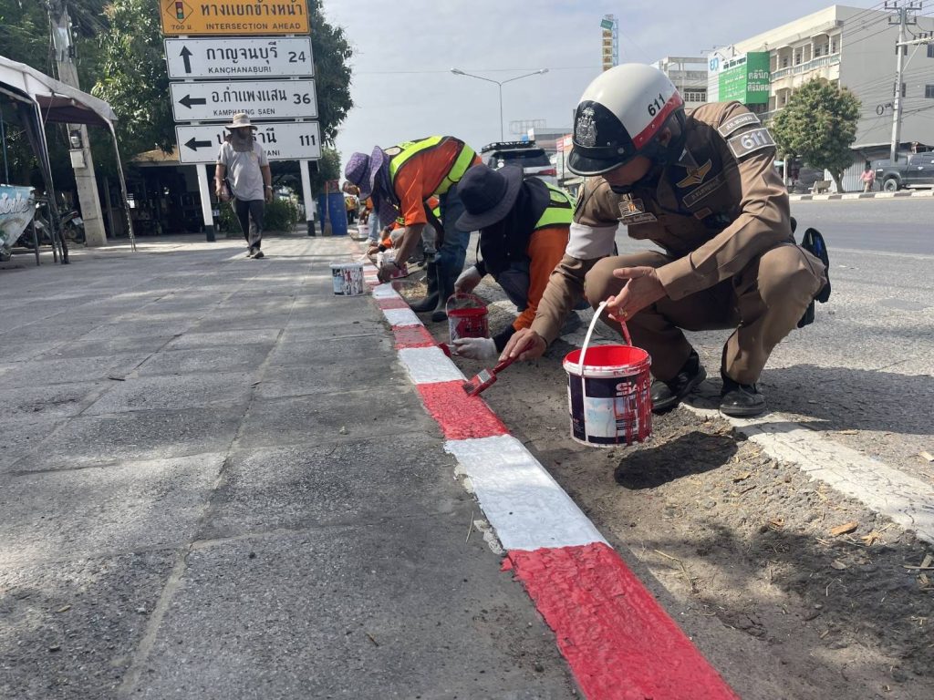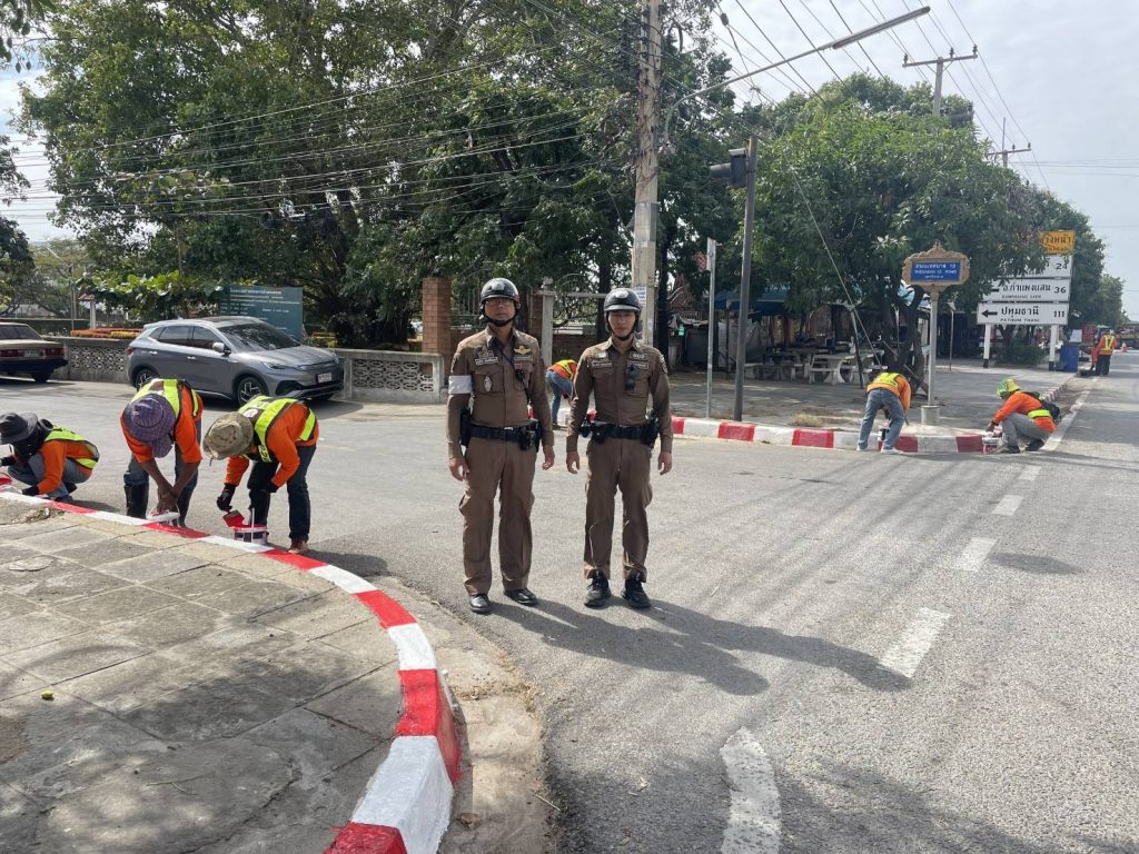 บูรณาการร่วมกับ หมวดทางหลวง ทาสี ขาว-แดง,ขาว-เหลือง เพื่อเป็นการเตรียมความพร้อมการป้องกันและลดอุบัติเหตุเทศกาลปีใหม่2568