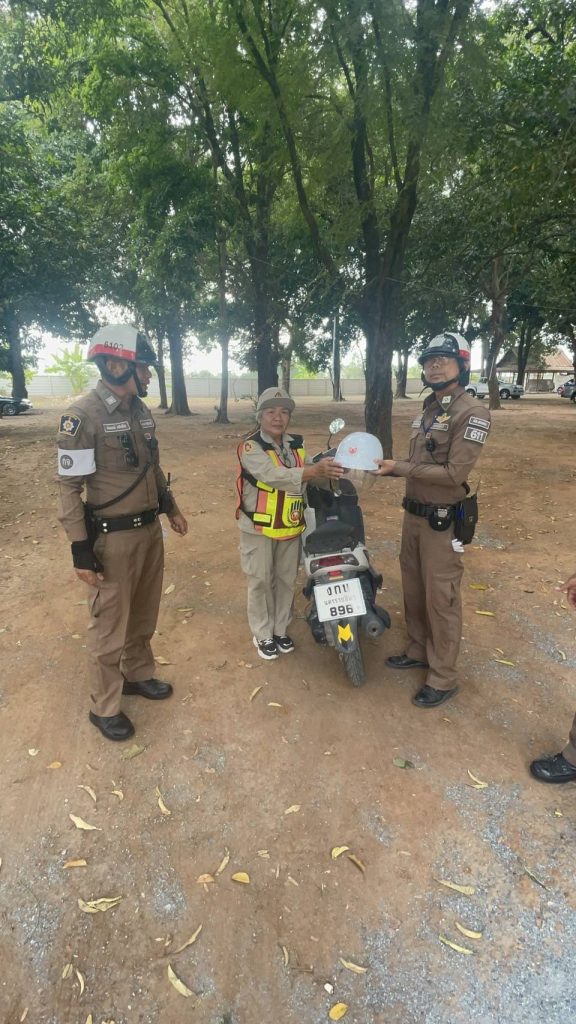 ปฎิบัติตามโครงการ“ ตำรวจช่าง” เปลี่ยนหลอดไฟท้ายรถจักรยานยนต์ ติดสติกเกอร์สะท้อนแสง และมอบหมวกกันน็อก