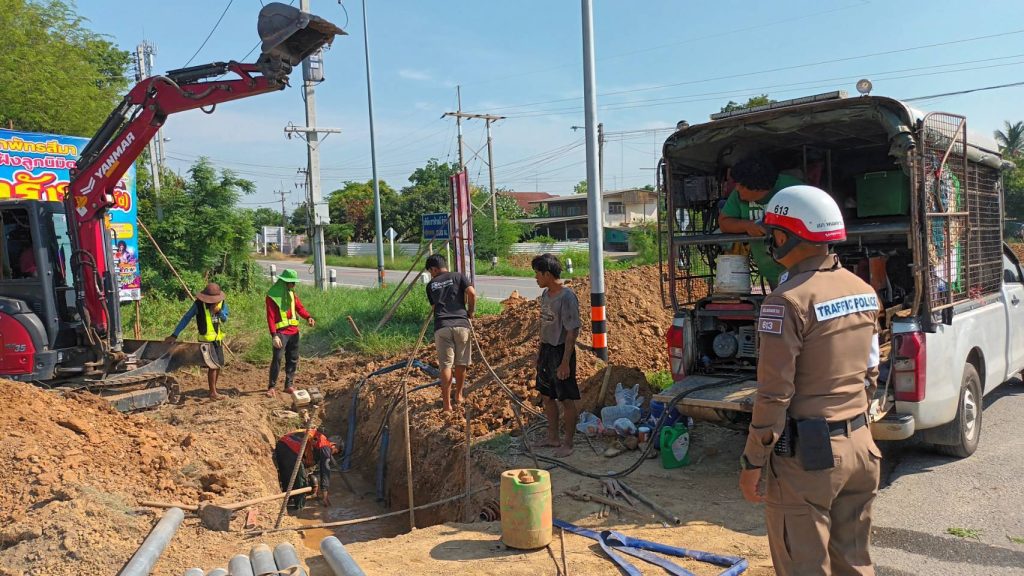 ✴️ตรวจเส้นทางถนนเลียบคันคลองชลประทาน กจ.3095 ป้องกันเหตุ และอำนวยความสะดวกการจราจร การติดตั้ง สัญญาณไฟจราจร บริเวณสี่แยกสระลุมพุก ต.หนองสาหร่าย อ.พนมทวน จ.กาญจนบุรี
