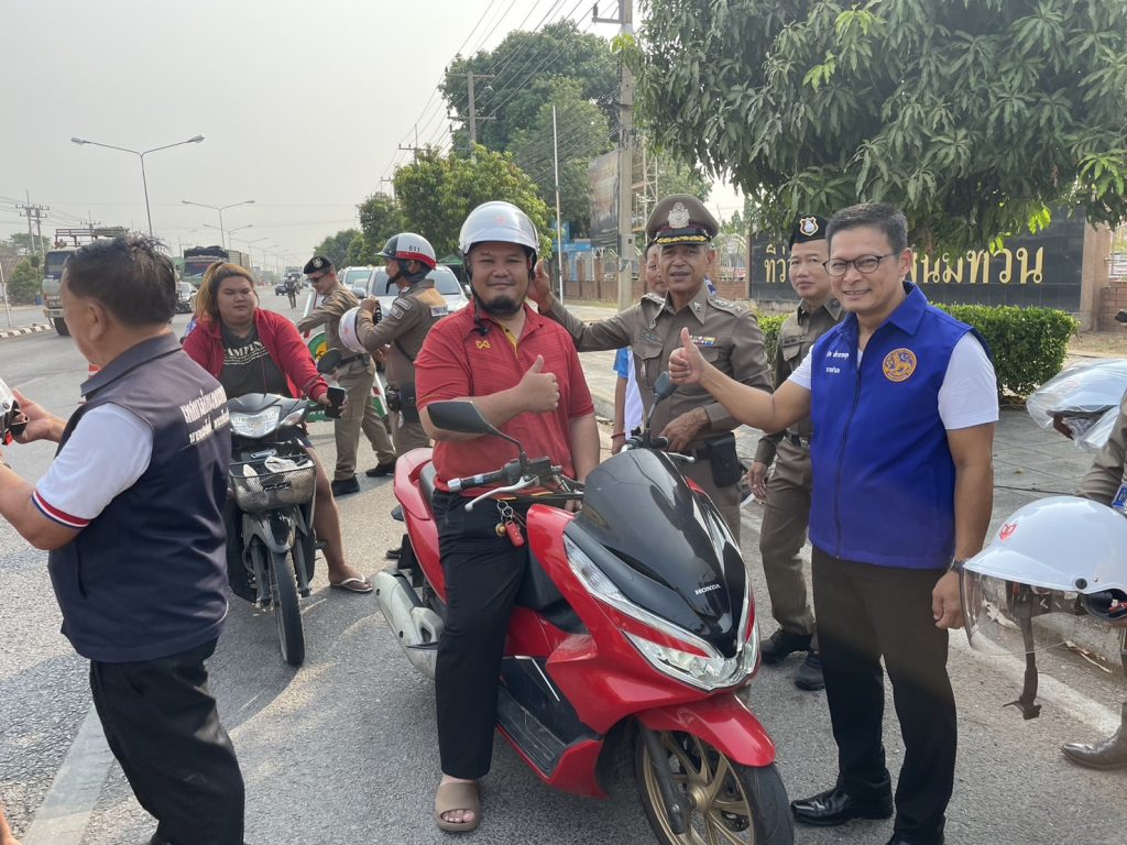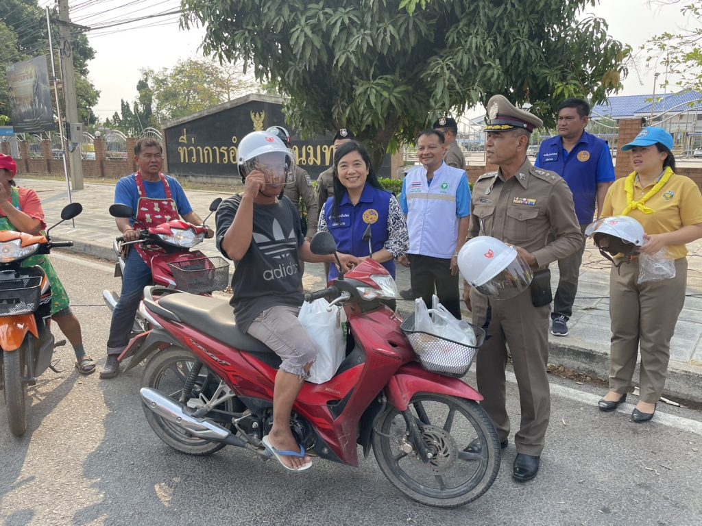 🔺 แจกหมวกกันน็อค “ในโครงการ ขับขับขี่ปลอดภัยร่วมใจใส่หมวกกันน็อค” ณ จุดบริการประชาชน หน้าที่ว่าการอำเภอพนมทวน