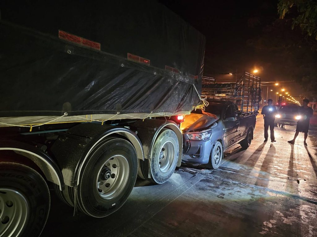 พนมทวน 30 ว.4 ตรวจสอบเหตุ ว.40 รถกระบะ + รถบรรทุก ไม่มีผู้ได้รับบาดเจ็บไม่มีสิ่งของหลวงเสียหายที่เกิดเหตุ : ไฟแดงห้วยสะพาน ต.หนองโรง อ.พนมทวนฯ