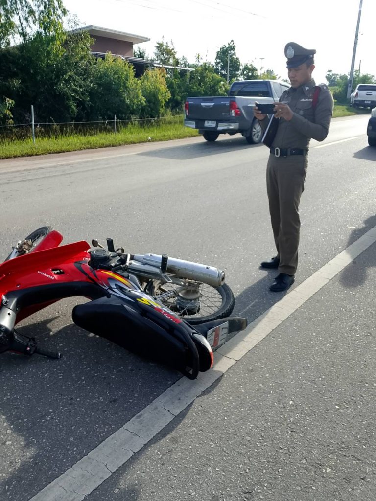 พนักงานสอบสวนตรวจสอบเหตุ ว.40 รถจักรยานยนต์เฉี่ยวชนกัน