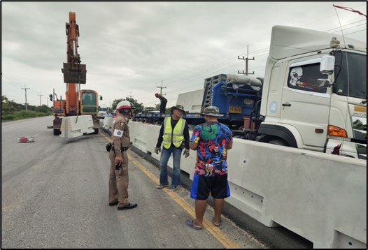 สายตรวจจราจร ตรวจเส้นทาง สถานที่ก่อสร้างเกาะกลางถนน(แบบแท่งปูน)ถนน 324