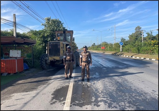 วันที่ 16 พฤศจิกายน 67 ร.ต.อ.อนุรักษ์ เกียรติไพบูลย์ รอง สวป.สภ.พนมทวน ร้อยเวร 60 พร้อมสายตรวจจราจร ตรวจเส้นทาง สถานที่ก่อสร้างปรับปรุงพื้นถนน ถนนสายกาญจนบุรี-อู่ทอง 324 กำชับเรื่องการติดตั้งอุปกรณ์ในการป้องกันการเกิดอุบัติเหตุทางถนน ในสถานที่ซ่อมสร้างถนน พื้นที่ ม.8 อำเภอพนมทวน จว.กาญจนบุรี