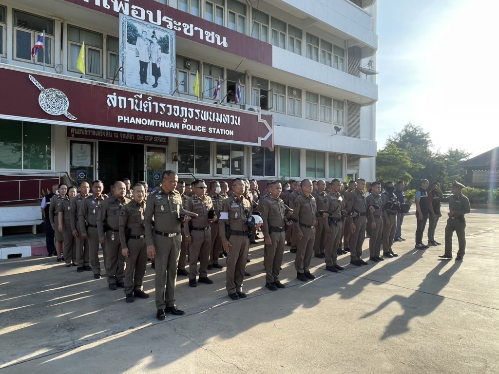 วันที่ 11 ธ.ค.2567 เวลา 08.00 น. พ.ต.อ.ธวัชชัย นรสิงห์ ผกก.สภ.พนมทวน เรียกข้าราชการตำรวจรวมแถวประจำสัปดาห์ แจ้งข้อสั่งการผู้บังคับบัญชา และอบรมชี้แจงการปฏิบัติหน้าที่ เน้นย้ำการเสริมสร้างคุณธรรมและความโปร่งใส ไม่เรียกรับสินบน และไม่ให้มีการทุจริตในการปฏิบัติหน้าที่ ณ หน้าที่ทำการ สภ.พนมทวน