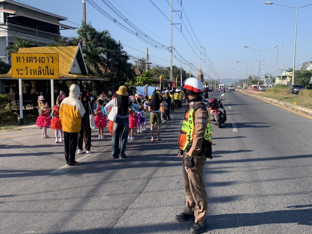 อำนวยความสะดวกการจราจร ขบวนพาเหรดการแข่งขันกีฬากลุ่มสัมพันธ์ กีฬากลุ่มโรงเรียนห้วยสะพาน