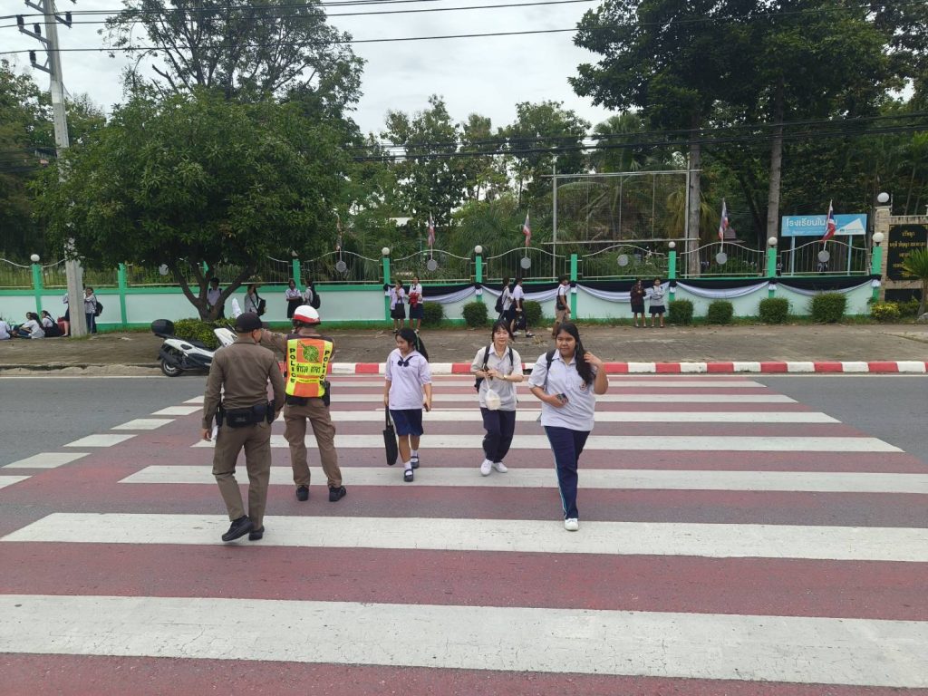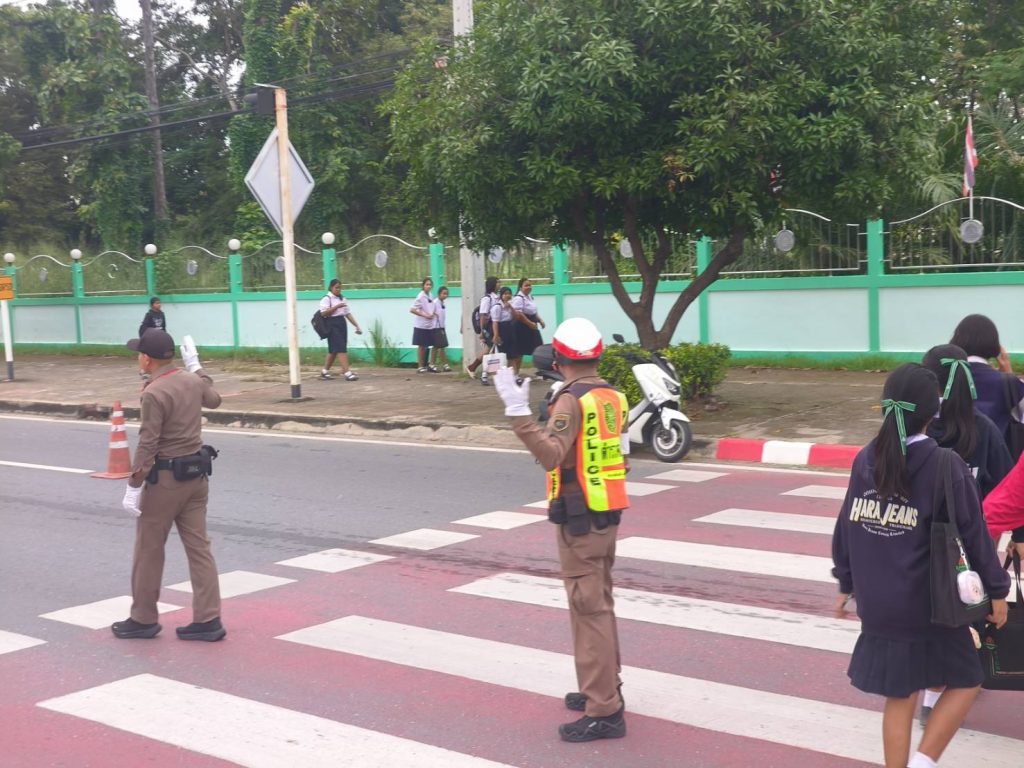 🔺 ให้การจราจรบริการครูและนักเรียน หน้าโรงเรียนพนมทวนชนูปถัมภ์