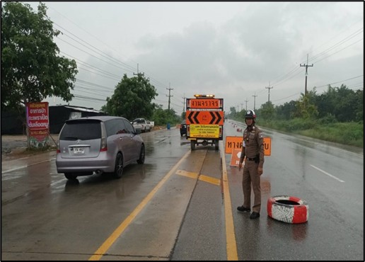 สายตรวจจราจร ตรวจเส้นทาง สถานที่ก่อสร้างเกาะกลางถนน(แบบแท่งปูน)ถนน 324 วันที่ 4 ตุลาคม 67 ร.ต.ต.จรูญ