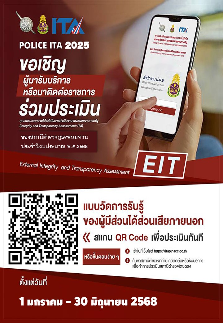 ข่าวประชาสัมพันธ์ เชิญร่วมประเมินแบบวัดการรับรู้ผู้มีส่วนได้ส่วนเสียภายนอก EIT ปี 2568 สถานีตำรวจภูธ