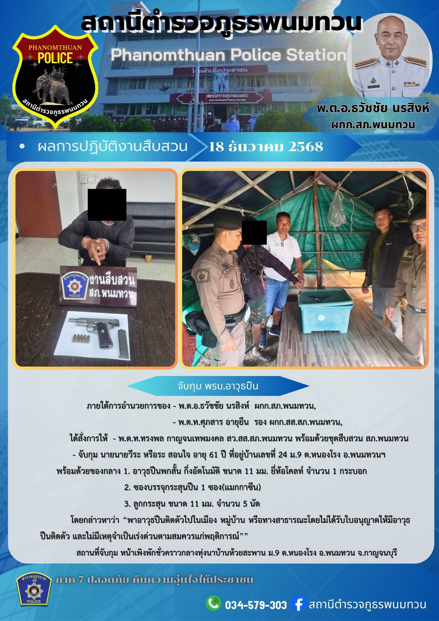 จับกุม พรบ.อาวุธปืน 🔺สภ.พนมทวน ภ.จว.กาญจนบุรี ขอรายงานผลการปฏิบัติจับกุม พรบ.อาวุธปืน🔺 วันที่ 18 ธัน