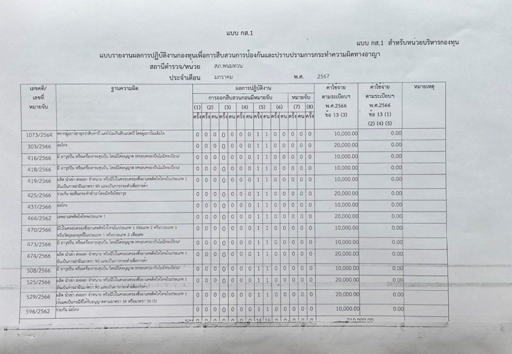 ข้อมูลเงินกองทุนเพื่อการสืบสวน สอบสวน การป้องกันและปราบปรามการกระทำผิดทางอาญา